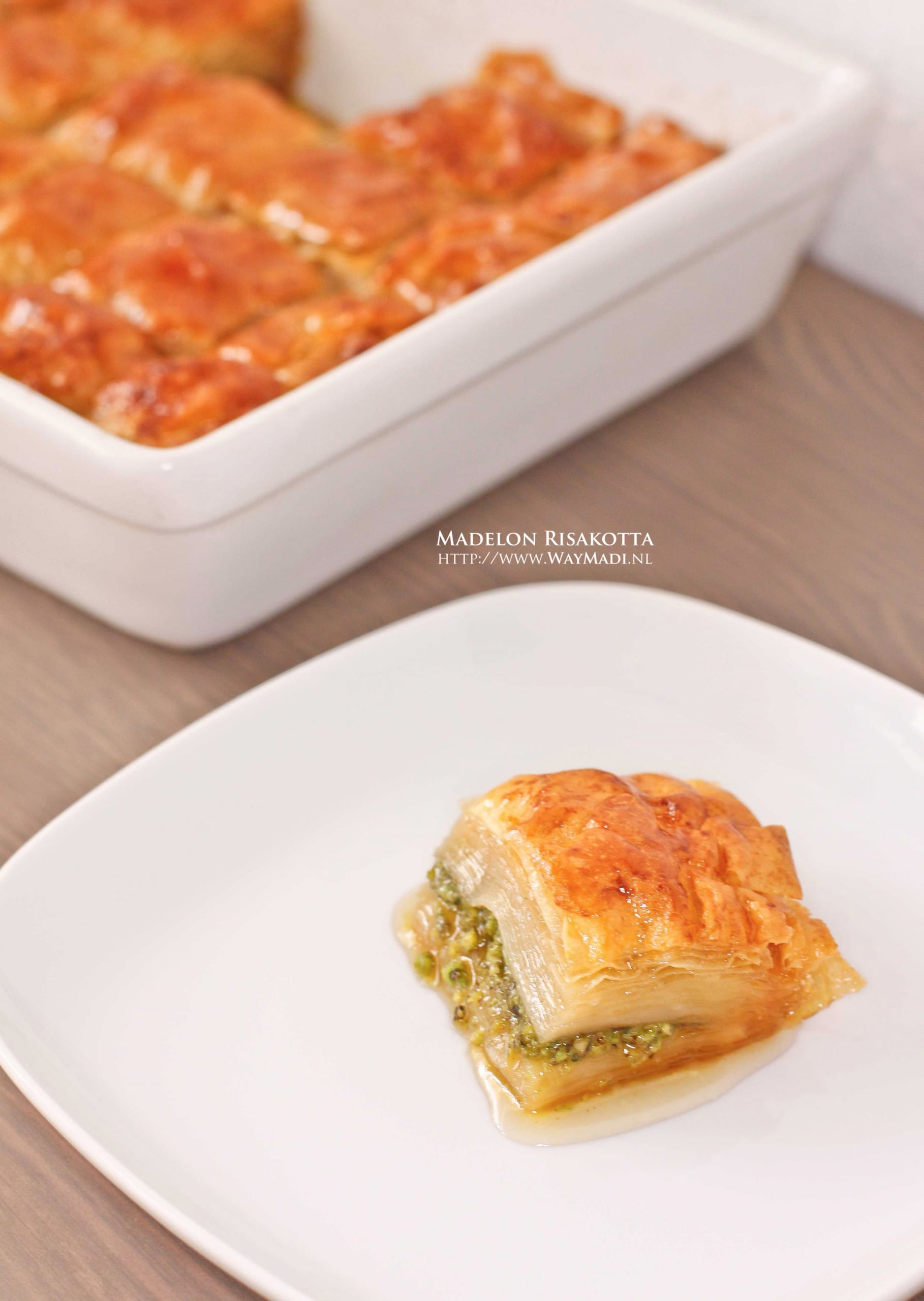 Als je geen zin hebt in baklava met pistache of je vindt het wat te duur dan kun je ook kiezen voor bijvoorbeeld walnoten of een mix van walnoten en amandelen. Maar hier in huize waymadi is pistache toch wel echt de favoriet.