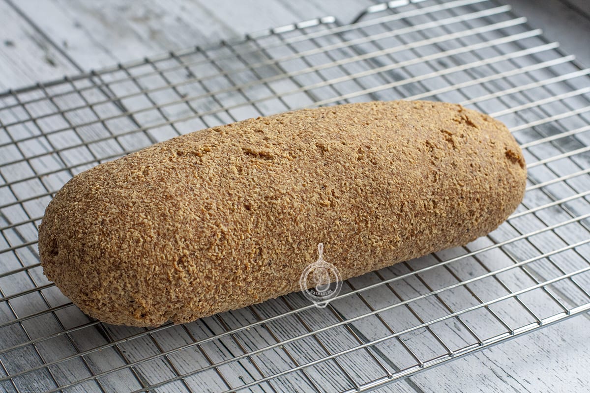 - Bak het keto stokbrood in 40 minuten af. Ik wissel de laatste tien minuten van onder- en bovenwarmte naar ventilator met onder- en bovenwarmte voor een fijne korst.