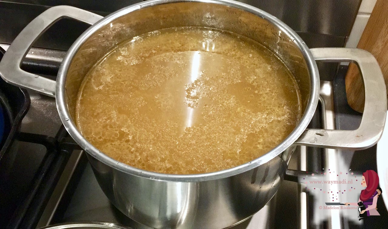 Wil je meer lezen over de gezondheidsvoordelen van bottenbouillon? Bekijk dan de blog van Isra van Ministijl.nl. Zij maakt bouillon met een Crockpot (slowcooker). In mijn recept gebruik ik een hele grote soeppan.