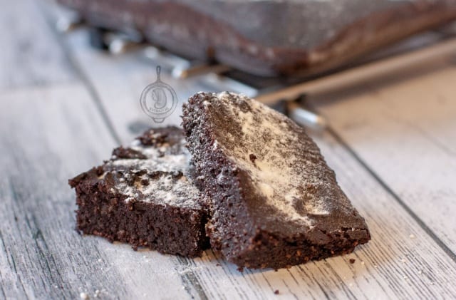 - Laat afkoelen op een afkoelrek en strooi daarna nog wat ‘poedersuiker’ bovenop je keto brownies als garnering.