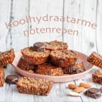 Bak de koolhydraatarme noten repen in 15 minuten af in de oven. Ze kleuren langs de randjes een klein beetje. Laat ze volledig afkoelen in de vormpjes op een afkoelrek. Daarna kun je ze uit de vormpjes halen en luchtdicht bewaren voor minimaal 2 weken op kamertemperatuur of in de koelkast bij warm weer.